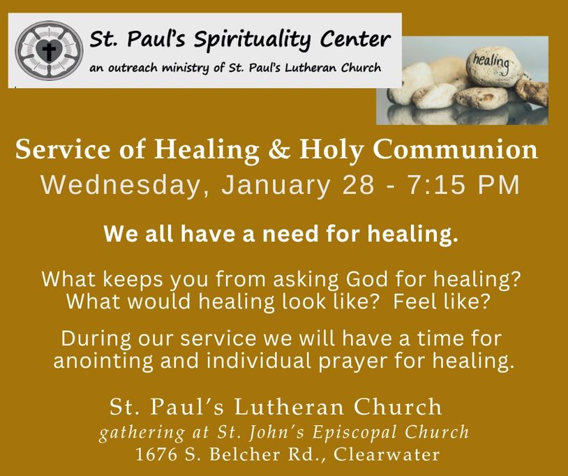 We all are in need of God's healing presence. Join us as we hear God's Word, prayer for God's healing and receive the presence of Christ at the Lord's Table. There will be an opportunity for individual prayer and anointing.