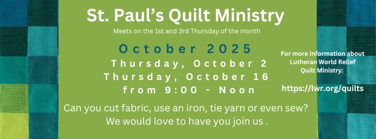 We quilt for a purpose. Our quilting is part of the relief ministry of Lutheran World Relief. Worldwide, Lutherans and their friends gather to sew handmade quilts which are distributed around the world to people experiencing disaster or conflict. Check out the Lutheran World Relief Mission Quilts webpage: